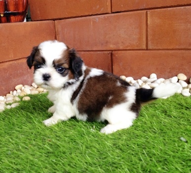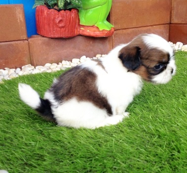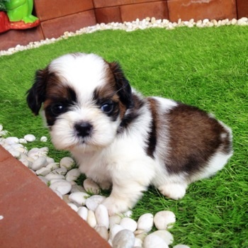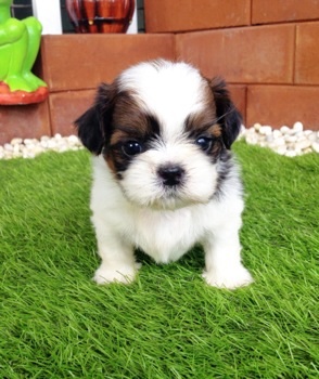 น้องโบนัส ชิสุ เพศชาย สีขาว น้ำตาลเข้ม หน้าหวานเจี๊ยบ