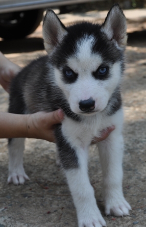 น้องหมาไซบีเรียนเพศผู้ สีขาวดำ 2 ตาฟ้าคู่ ราคาไม่แพง