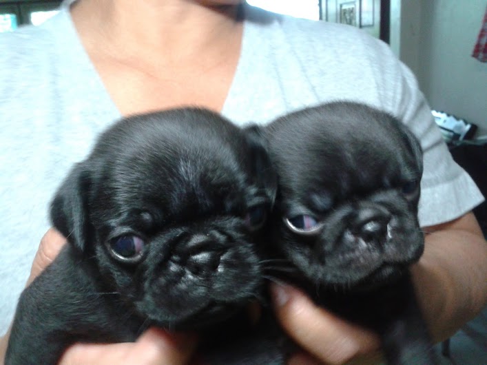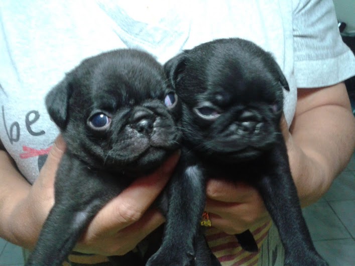 ขายลูกปั๊กสีดำแท้ อ้วนกลมน่ารักทุกตัวค่ะ อายุ1เดือน ทานอาหารเม็ดแช่น้ำได้แล้ว