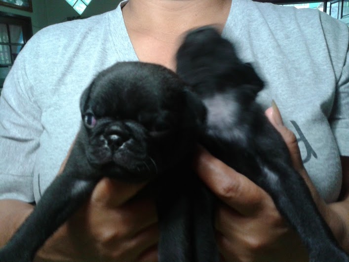ขายลูกปั๊กสีดำแท้ 100เปอร์เซ็นอายุ1เดือน น่ารักแข็งแรงอ้วนๆกลมๆค่ะ