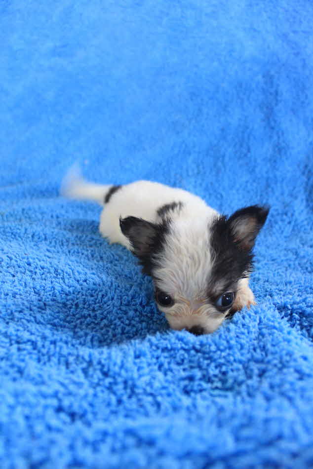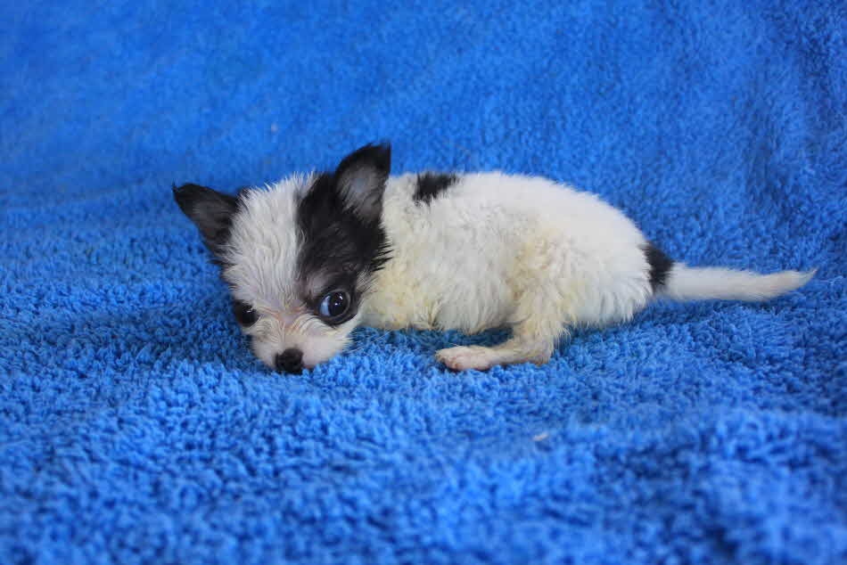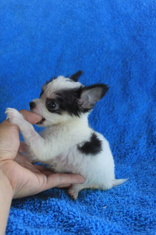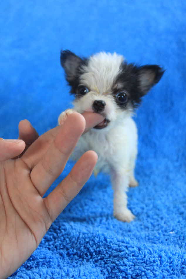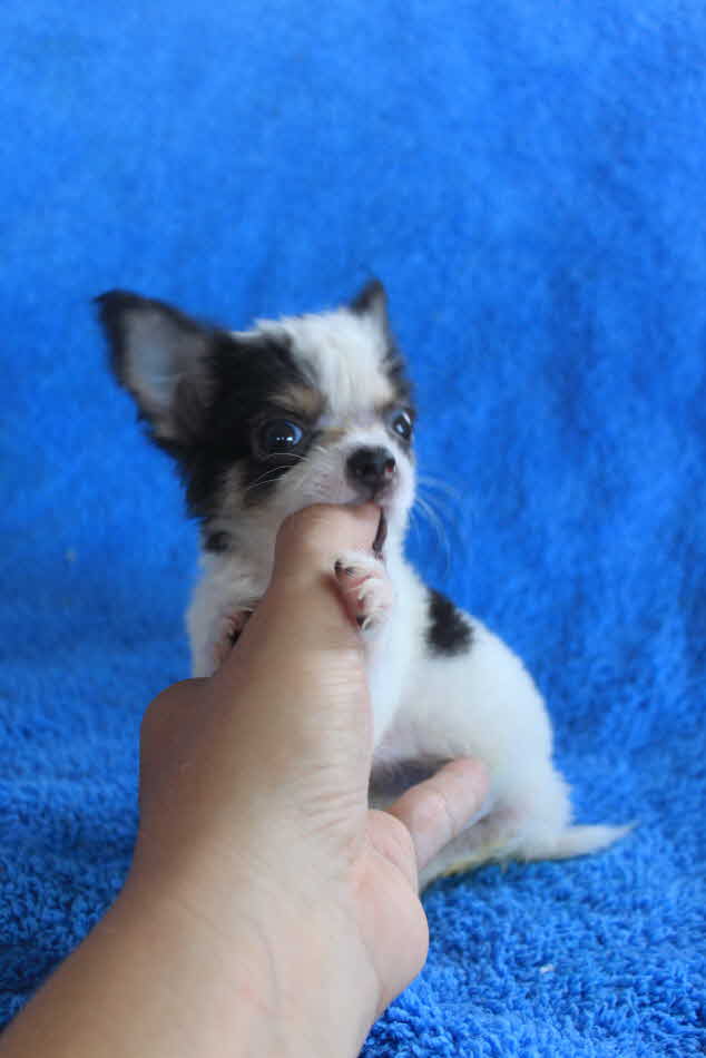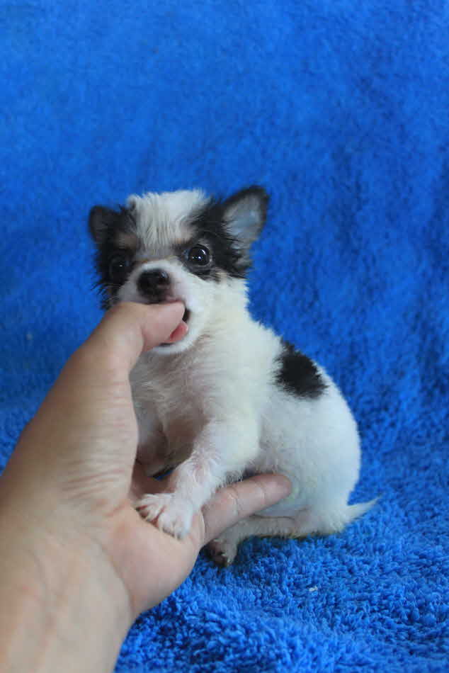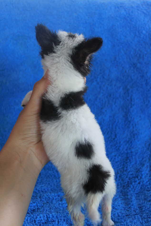 ชิวาวาขนยาวสีแฟนซีขาว-ดำ T-Cup น่ารักราคาไม่แพง พร้อมใบเพ็ดเต็มใบค่ะ