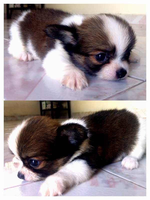 ขายลูกชิวาวาเพศผู้ขนยาว ตัวเล็ก สวย หัวโต น่ารัก แข็งแรง กินอาหารแล้ว
