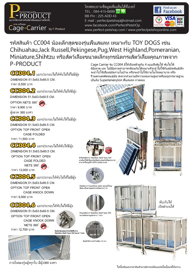 รหัสสินค้า CC004.3 น้องเล็กสุดของรุ่นพื้นสแลท เหมาะกับ TOY DOGS เช่น Chihuahau,Jack Russell,Pekingese,Pug,West Highland,Pomeranian หรือสัตว์เลี้ยงขนาดเล็กทุกชนิดกรงสัตว์เลี้ยงคุณภาพจาก P-PRODUCT