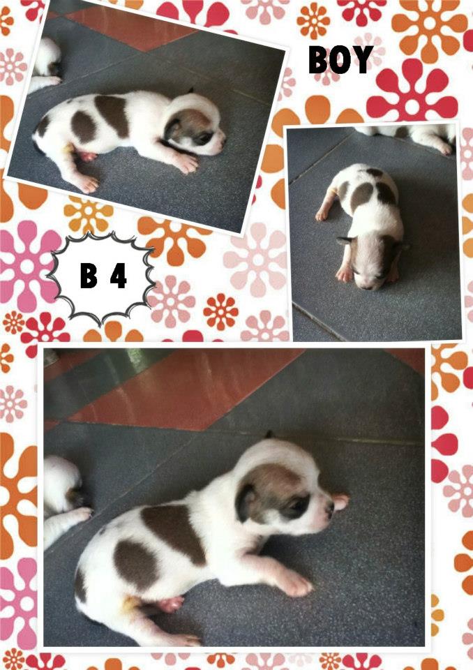 แม่เป็นชิวาวาไซต์ปกติ ขนสั้น พ่อเป็นไซต์เล็กจิ๋ว ขนสองชั้น (ขนยาวปานกลาง)