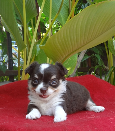 น้องกาแฟ ชิวาว่าขนยาว เพศเมีย สีช็อคโกแลต (น้ำตาลเข้ม) เกิดวันที่ 26 มีนาคม ตอวันนี้ใกล้จะหย่านมแล้วอ้วนปุกปุย สุขภาพแข็งแรงปลอดโรคแน่นอนที่สำคัญขี้เล่น กินเก่งมากครับ สำหรับผู้สนใจน้องสามารถจองเป็นเจ้าของได้สอบถามรายละเอียดเพิ่มเติม 084-5041402 คุณนิว จัดส่งผ่านคาร์โก้การบินไทยและนกแอร์ ดูรูปภาพน้องเพิ่มเติมได้ที่ www.facebook.com/dogtoyclub