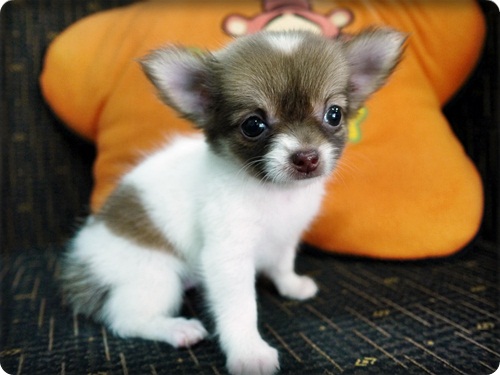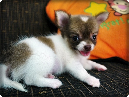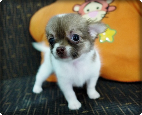 ขาย ลูกชิวาวา ขนยาว สาวน้อย สีแฟนซี จมูกสีช็อค ตาสีฟางข้าว หัวโต ไซค์จิ๋วๆ