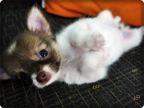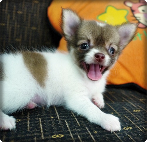 !! SALE !! ลูกชิวาวา ขนยาว สาวน้อย สีแฟนซี จมูกสีช็อค ตาสีฟางข้าว หัวโต ไซค์จิ๋วๆ ( มีคลิป