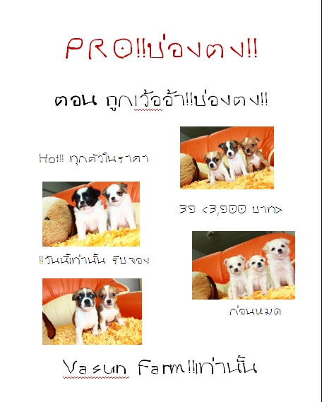 ลูกสุนัขทุตัว ทุกเพศ ทุกชนิด ขายให้ ท่านเลย ในราคาเพียง