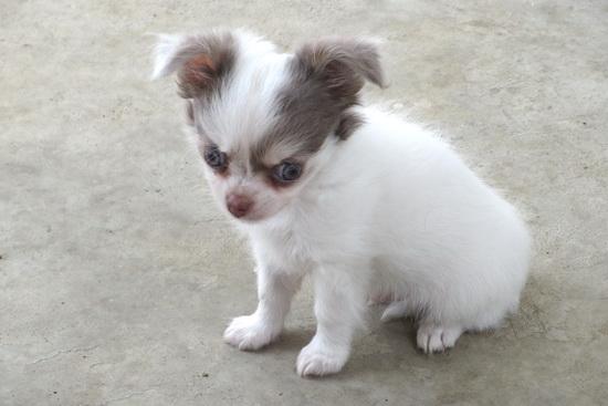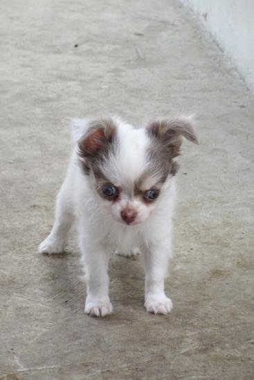 ขายเด็กน้อยชิวาวาเพศผู้สีขาวเทา ตัวสีขาวล้วน มาร์คกิ้งสีเทาที่หัว ขนแน่น หัวโต สายเลือดสีช็อคทั้งพ่อและแม่ครับ มีใบเพ็ดดีกรีเต็มใบ