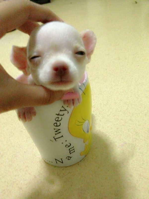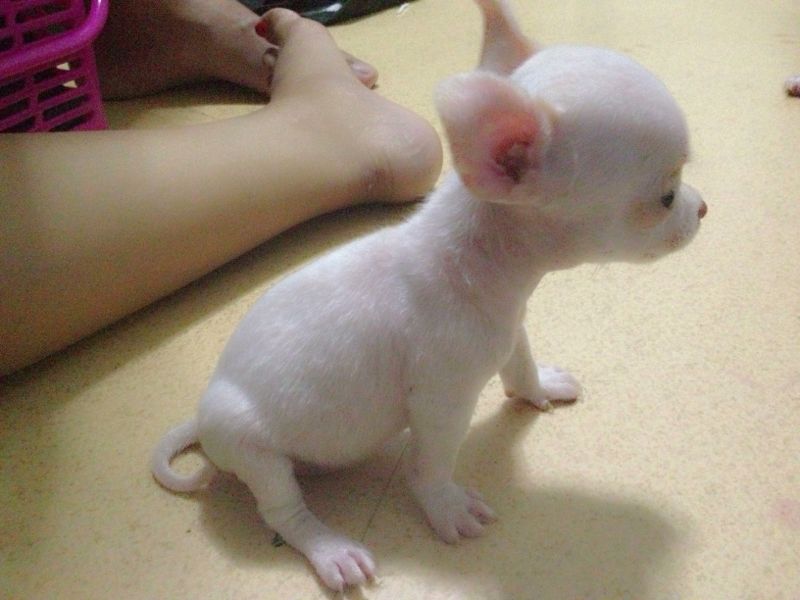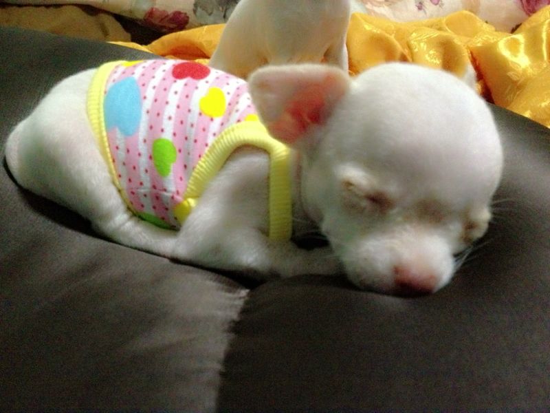 ชิวาวา T- Cup เกรด Aขนสั้น ( มาก ) สีขาวล้วน เพศเมีย อายุ 2 เดือน หน้าสั้น หัวแอ๊ปเปิ้ล ตาสวย ลูกโทน