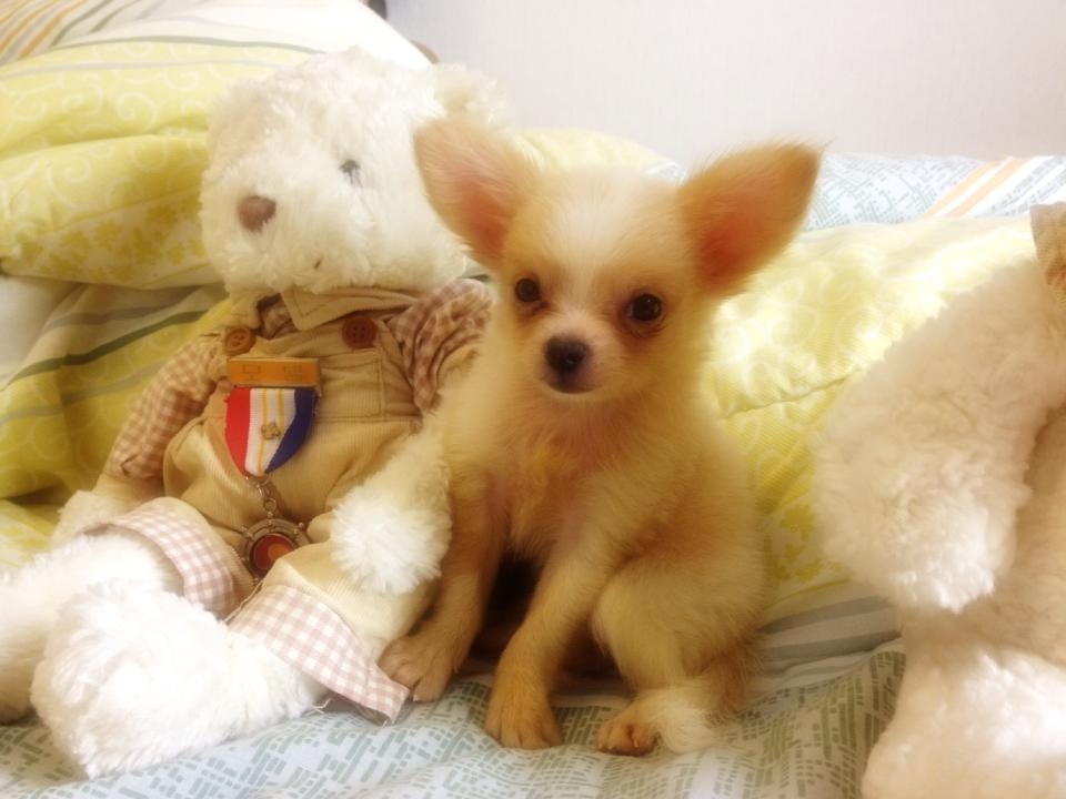 จองแล้ว ชิวาวาขนยาว(น้องนมสด)สีขาว-น้ำตาลอ่อน สายใต้หวัน ไซด์เล็กจิ๋วๆ
