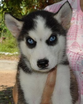 น้องหมาไซบีเรียน เพศผู้ 1 ตัว สีขาวดำ ตาฟ้าคู่ น่าตาน่ารัก ราคาไม่แพง