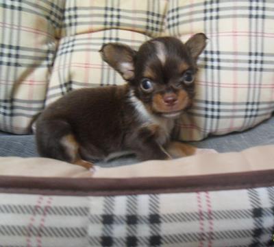 ขายชิวาวา เพศผู้ขนยาว สีช็อคแทน อกขาว น่าหัก น่าสั้นๆ ไซร์เล็ก เกือบทีคัพ มีใบเพดเต็ม น้องเกิด 18 มีนาคม อายุ 55 วัน หนักแค่ 3ขีด วัคซีน 1 เข็ม ถ่ายพยาธิแล้ว ตัวจิงน้องน่ารัก ตัวเล็กมากๆ สนใจติดต่อ 0813470870
