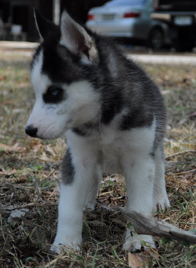 น้องหมาไซบีเรียน เพศผู้ 1 สีขาวดำ ตาฟ้าคู่ น่าตาน่ารักมาก โครงสร้างใหญ่ ราคา 8000 บาท