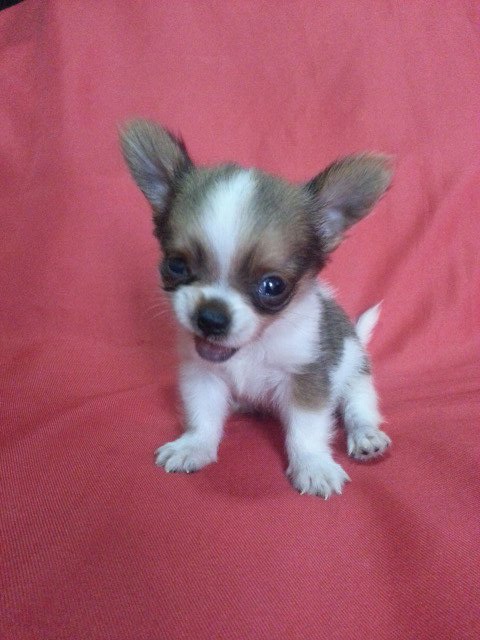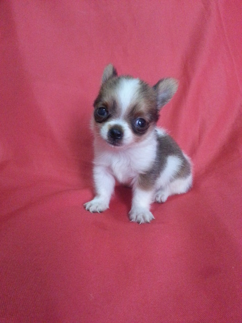 ชิวาวาผู้ชายขนยาว ทีคัพ หน้าสั้น ขาสั้น หัวโต แข็งแรง กินเก่ง ขี้เล่น ถ่ายเป็นที่