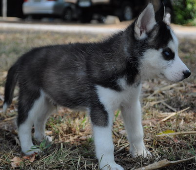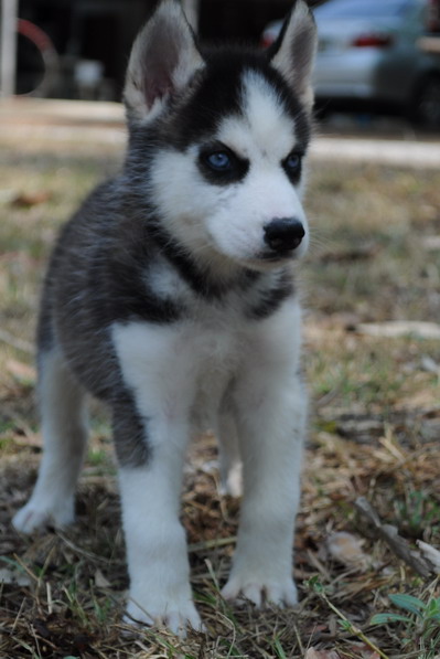 น้องหมาไซบีเรียน เพศผู้ 1 สีขาวดำ ตาฟ้าคู่ น่าตาน่ารัก โครงสร้างดี ราคา 7500 บาท