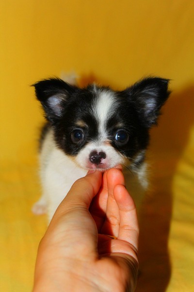ชิวาวาขนยาว ไซต์เล็ก น้องนิสัยร่าเริงค่ะขี้เล่นค่ะ (สีขาว + ดำ + มีคิ้วสีน้ำตาล) ภาพถ่ายปัจจุบันถ่ายก่อนลงเน็ตค่ะ สายเลือดดี เพศผู้ 1 ตัว ทำวัคซีนแล้ว 1 เข็ม ถ่ายพยาธิแล้ว 1 ครั้ง ตามภาพเลยค่ะ เกิดวันที่ 23 มีนาคม 56 อายุ 55 วัน ตัวจริงหัวกลมโต หน้าสั้นค่ะ ขนแน่น ตัวจริงน่ารัก ขี้เล่น ทานอาหารเก่งมากค่ะ เลี้ยงง่าย สุขภาพร่างกายแข็งแรง พ่อแม่เป็นขนยาวทั้งคู่ สุนัขเป็นสุนัขบ้านค่ะ สนใจสามารถเข้ามาชมน้องได้ค่ะไม่ซื้อไม่ว่ากันค่ะ สอบถามข้อมูลน้องเพิ่มเติมได้ค่ะ มีบริการส่งจ้า