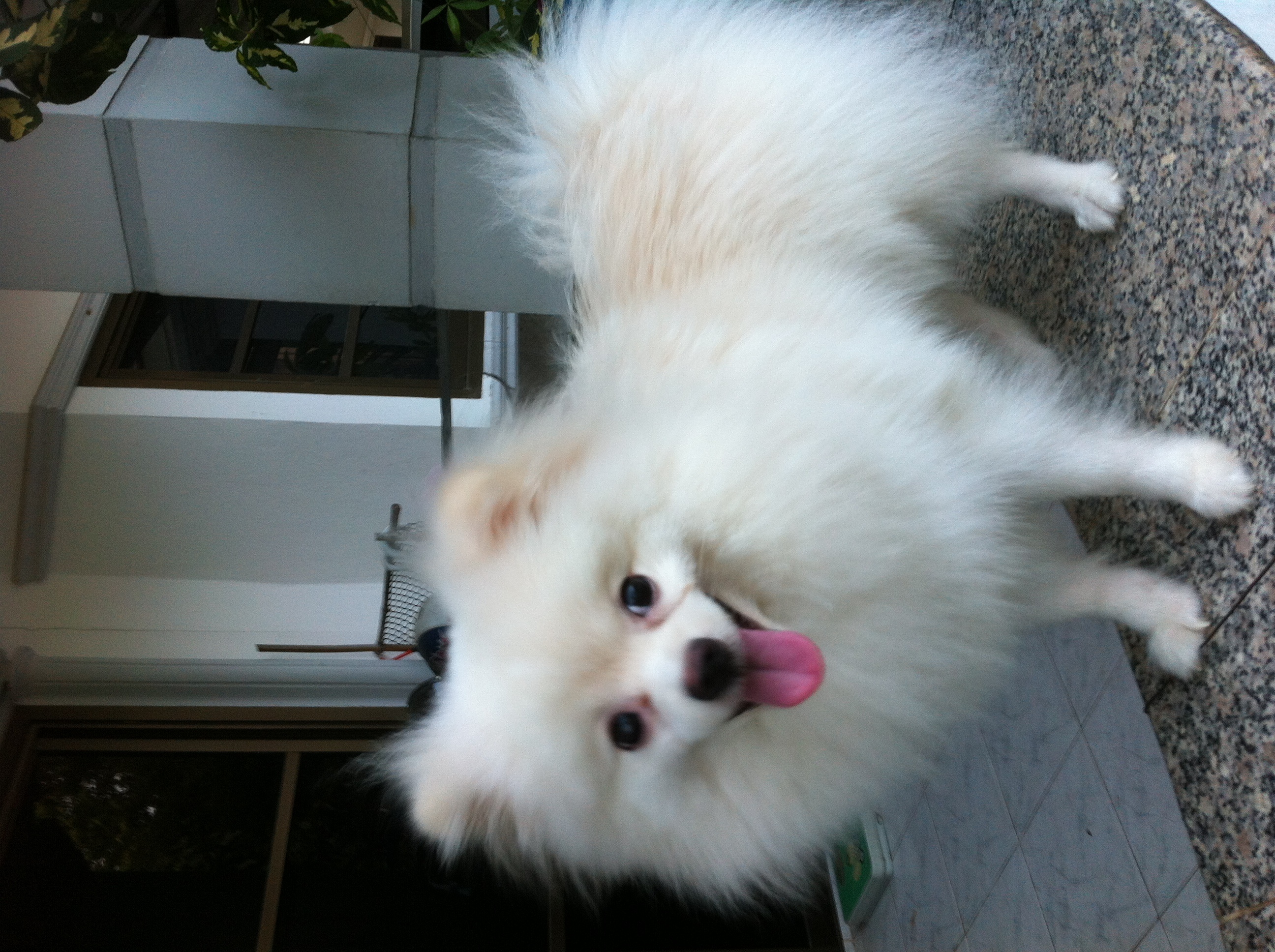 สุนัขพันธุ์ปอมสีขาวครีมเพศผู้ รับผสมพันธุ์ราคา500บาท+ลูก1ตัวอยู่จ.นครราชสีมาโทร0856432422