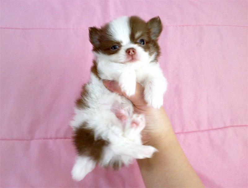 เด็กชาย แอชตัน อายุ 45 วัน ไซส์เล็ก ขนยาว สีขาวช็อค หัวโต หน้าสั้นจุ๊ด สวยมากค่ะ
