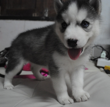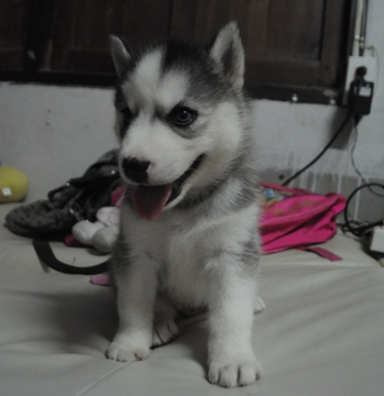น้องหมาไซบีเรียน เพศเมีย 1 ตัว สีขาวดำ ตาฟ้าคู่ น่าตาน่ารัก ราคาไม่แพง