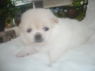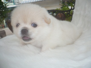 ขายลูกปอมผสมปักกิ่ง เพศผู้ สีขาวครีม ขนฟู ราคาไม่แพงครับ