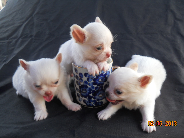***ขายลูกชิวาวา ขนยาว ไซด์t-cupสีขาว หน้าสั้นๆ เพศผู้1เพศเมีย2ตัว***