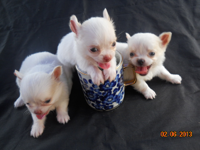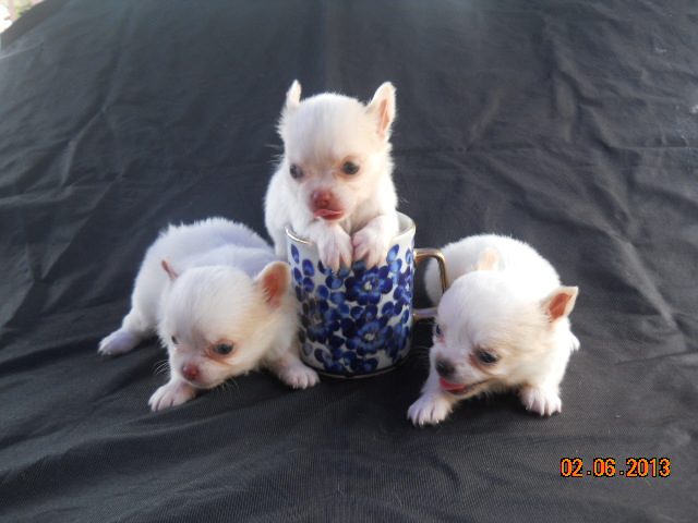 ***ขายลูกชิวาวา ขนยาว ไซด์t-cupสีขาว หน้าสั้นๆ เพศผู้2เพศเมีย1ตัว*** ดูรปเ