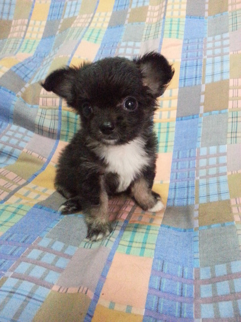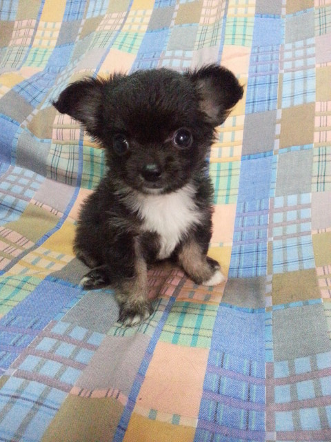 ชิวาวาผู้หญิง ขนยาวแน่น แบลคแทน มีแก้ม มีคิ้ว ถุงเท้า หน้าสั้น ขาสั้น ไซส์เล็ก แข็งแรง