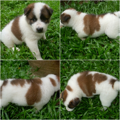 ลูกสุนัขเกิดวันที่ 26 เมษายน สีขาว-น้ำตาล 5.เพศเมีย ราคา 3000 บาท