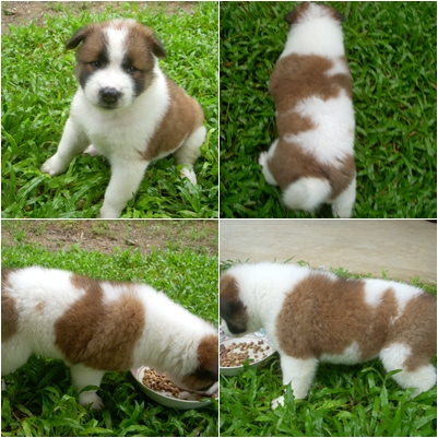 ลูกสุนัขเกิดวันที่ 26 เมษายน สีขาว-น้ำตาล 7.เพศผู้ ราคา 3500 บาท