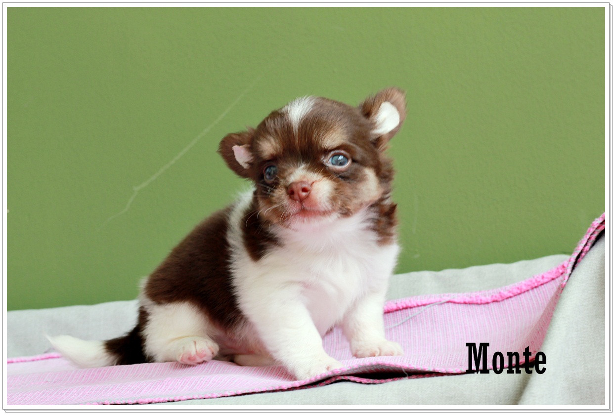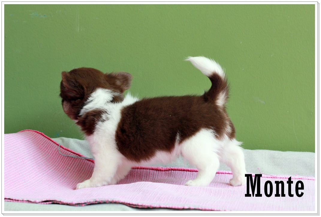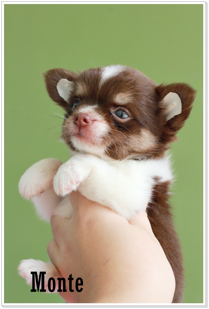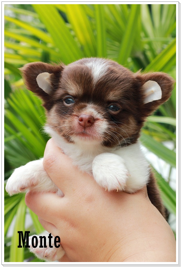 ด.ช.มอนเต้ ชิวาวาเพศผู้ ขนยาวสีขาวช๊อค สายไต้หวัน พร้อมใบเพดดีกรี
