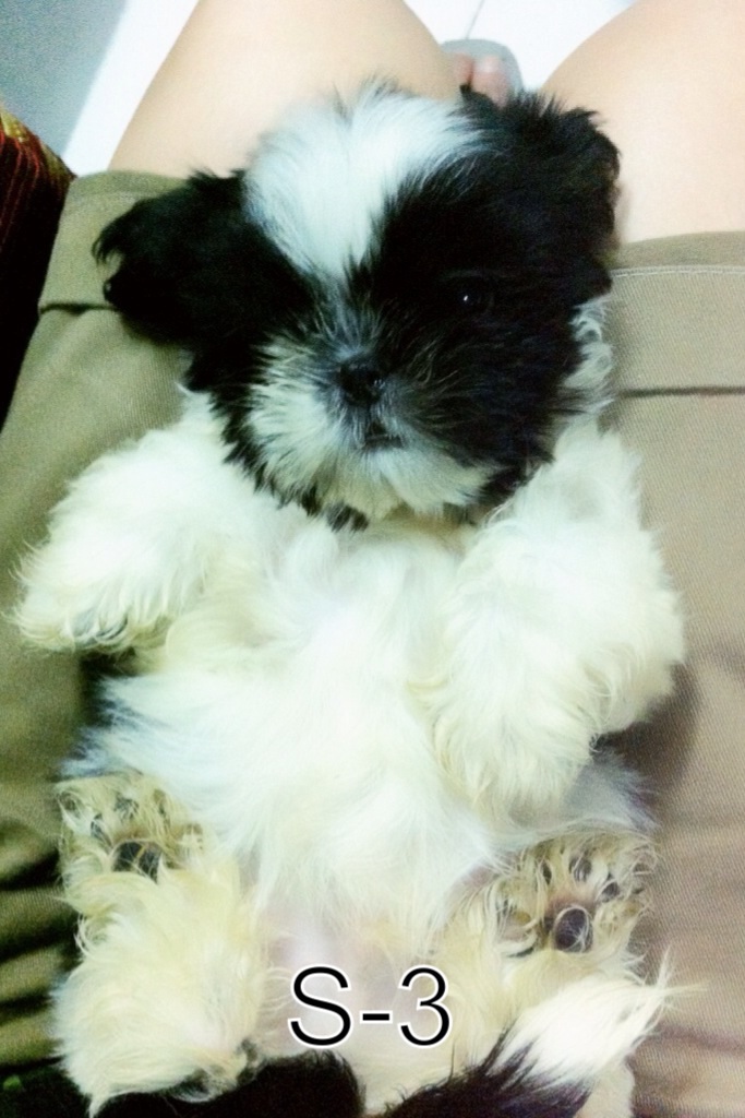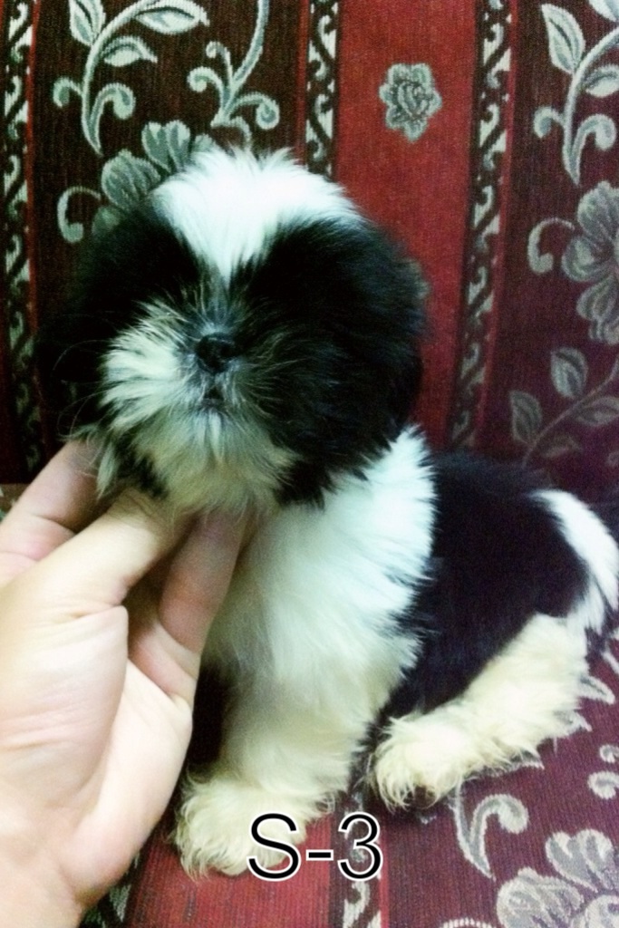 S-3ชิสุห์ทอยผู้สีขาวดำขนแน่นฟูนุ่มน่าสัมผัสราคาไม่แรงรับรองไม่ผิดหวัง