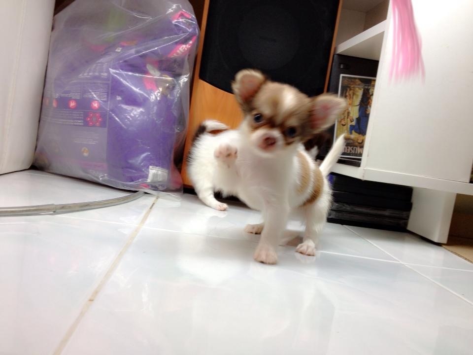 ชิวาวาขนยาว(น้องมอคค่า)สายใต้หวัน สีขาว-น้ำตาลช๊อก หน้าสั้น หัวแอปเปิ้ลสวย เพศผู้ ไซด์เล็กจิ๋ว มีหน้ากาก มีคิ้ว แข็งแรง ขี้เล่น ขี้อ้อน ติดคน ทานเก่ง ถ่ายพยาธิ+วัคซีน1เข็ม ฝึกขับถ่ายเป็นที่แล้วคะ