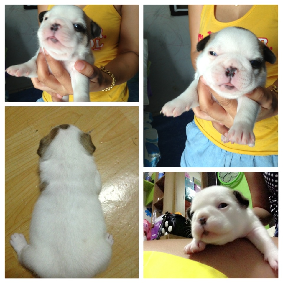 ขายลูกหมาเฟรนบูลด๊อก อายุ 34 วัน เพศเมีย สีขาว ลาย น้ำตาล ที่หู