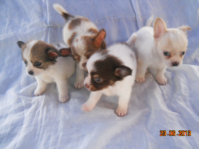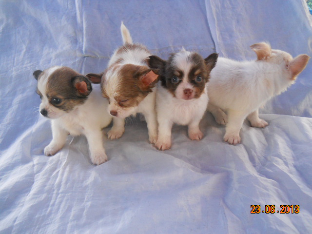 ขายลูกชิวาวาขนยาว ไซด์จิ๋ว สีแฟนซี หน้าสั้นๆ เพศผู้2ตัวเพศเมีย2ตัว