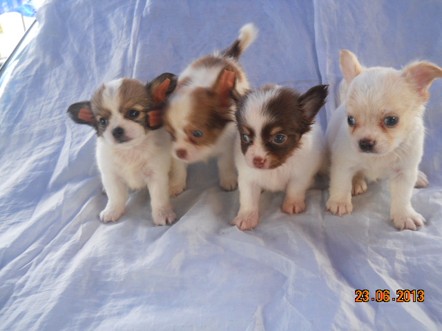 ***ขายลูกชิวาวา -ขนยาว ไซด์จิ๋ว สีแฟนซี หน้าสั้นๆ เพศผู้2ตัวเพศเมีย2ตัว***