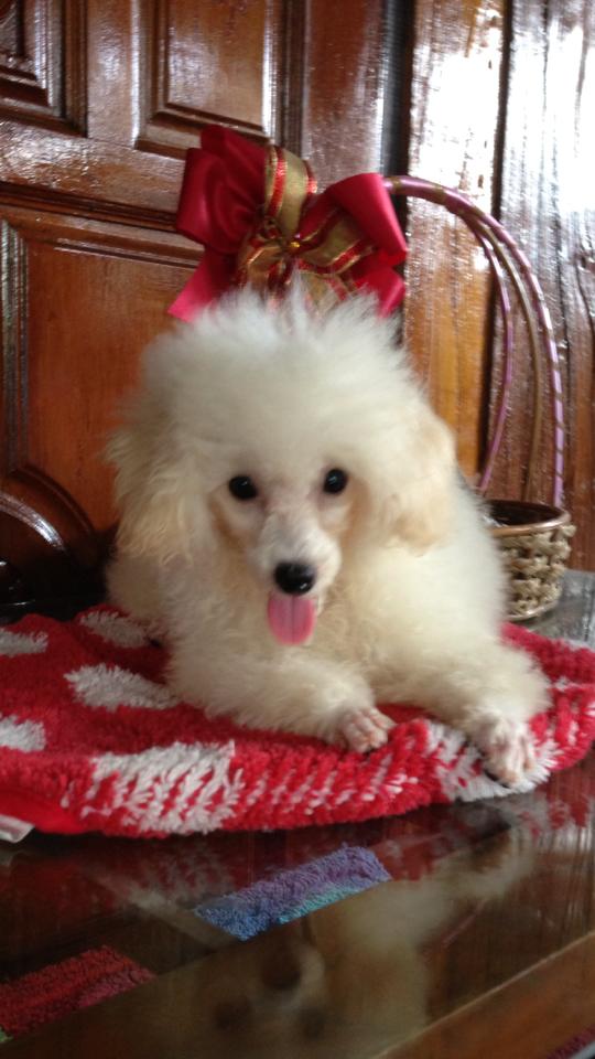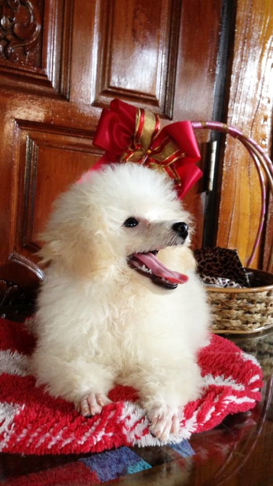 ขายลูกพุดเดิ้ล สีขาวสำลี ไซด์ทอยเล็กกึ่งทีคัพ เพศเมีย 1 ตัว ขนหยิกแน่น หน้าตุ๊กตาสวยน่ารักมาก อายุ 6 เดือน (เกิด 2 ธ.ค. 55) แข็งแรงร่าเริงสุขภาพดี วัคซีนครบ เป็นลูกสุนัขบ้าน รับประกันความสวยน่ารัก ราคา 7000 บาท สนใจติดต่อ 081-457-5253