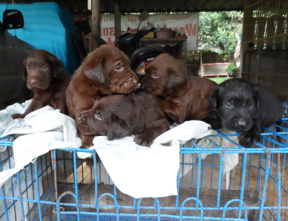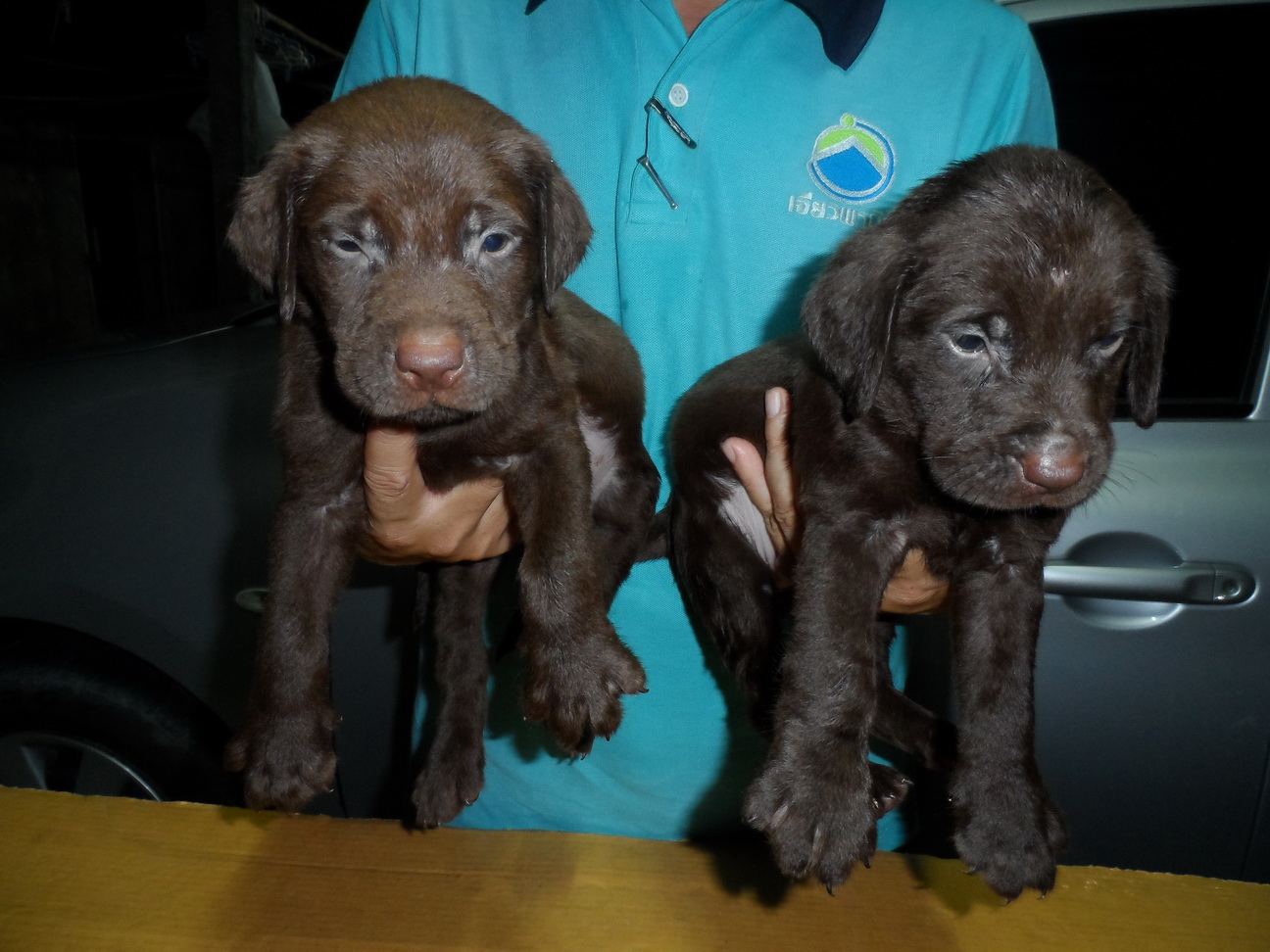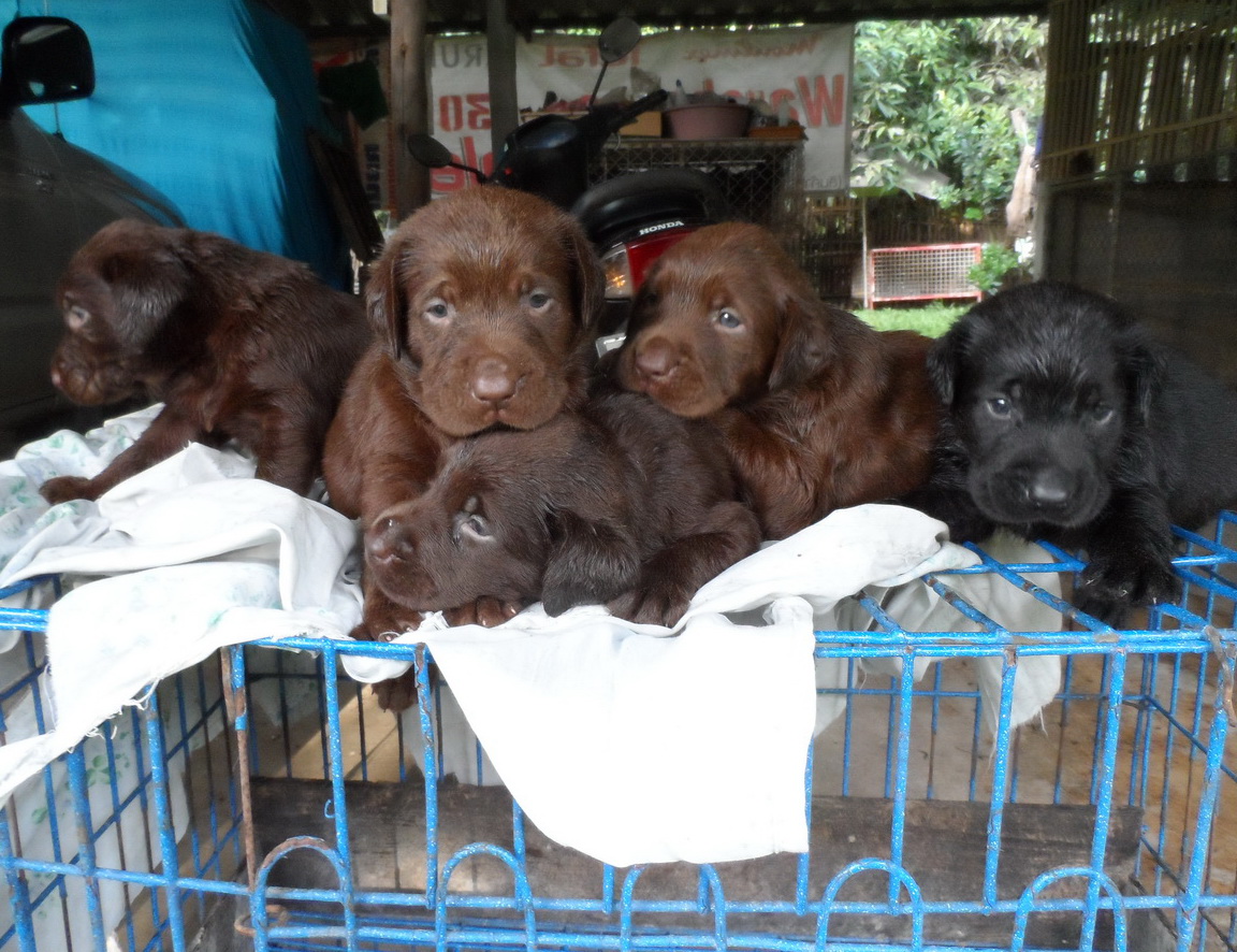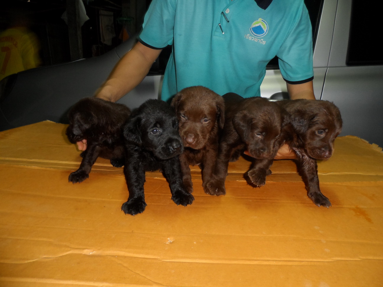 สีดำ 1 ตัว สีช๊อค 4 ตัว ตัวผู้ 1 ตัว ตัวเมีย 4 ตัว เกิดวันที่ 31 พฤษภาคม 2556 พ่อ-แม่ลาบราดอร์ 100 % ราคา 6,000 บาท (พร้อมส่งและวัคซีน)