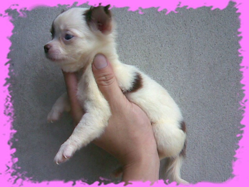 ลูก ชิวาว่า ขาว-ช็อค เพศเมีย ขนยาว ลายโมเช่ กินอาหารและน้ำเองได้ ทำวัคซีนรวมและถ่ายพยาธิแล้ว สุขภาพแข็งแรง เจ้าของเลี้ยงเอง ดูแลอย่างดี มีบริการจัดส่งครับ