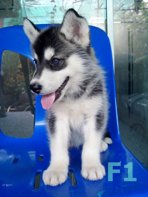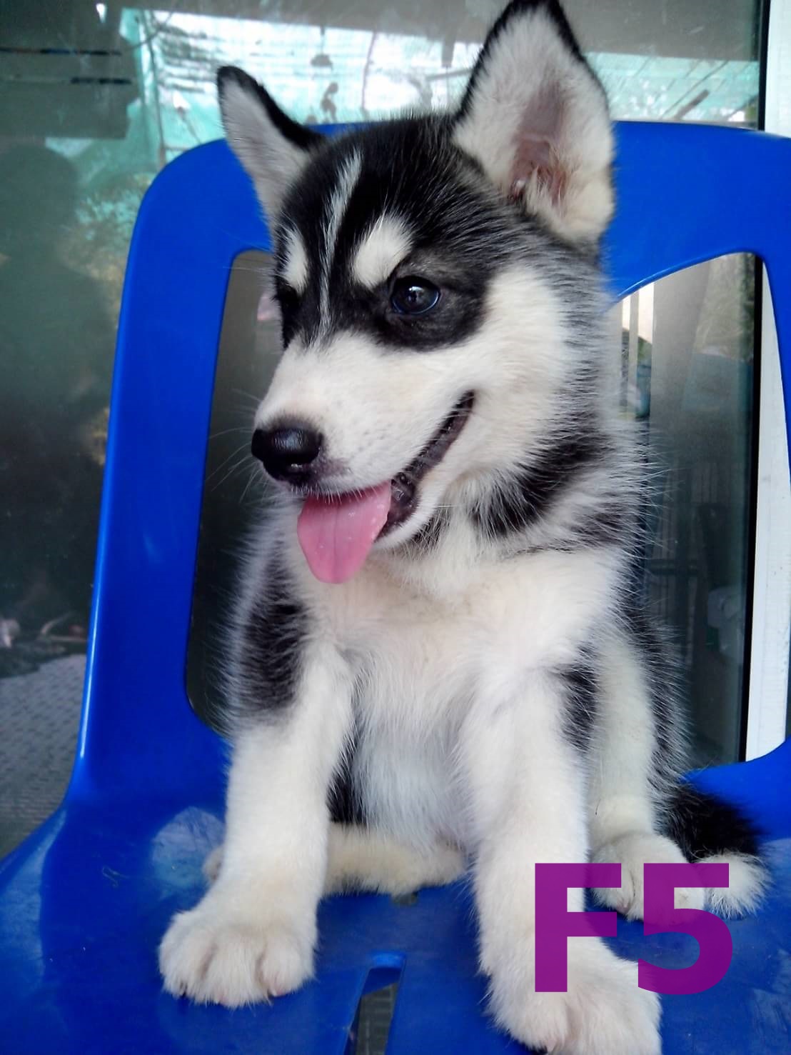 ลูกไซบีเรียนแท้ๆ100%เชื้อยสายดีอายุเดือนกว่า สีดำขาว-น้ำตาล หน้าสวยๆสุขภาพดีตาฟ้าและตาสีน้ำข้าว