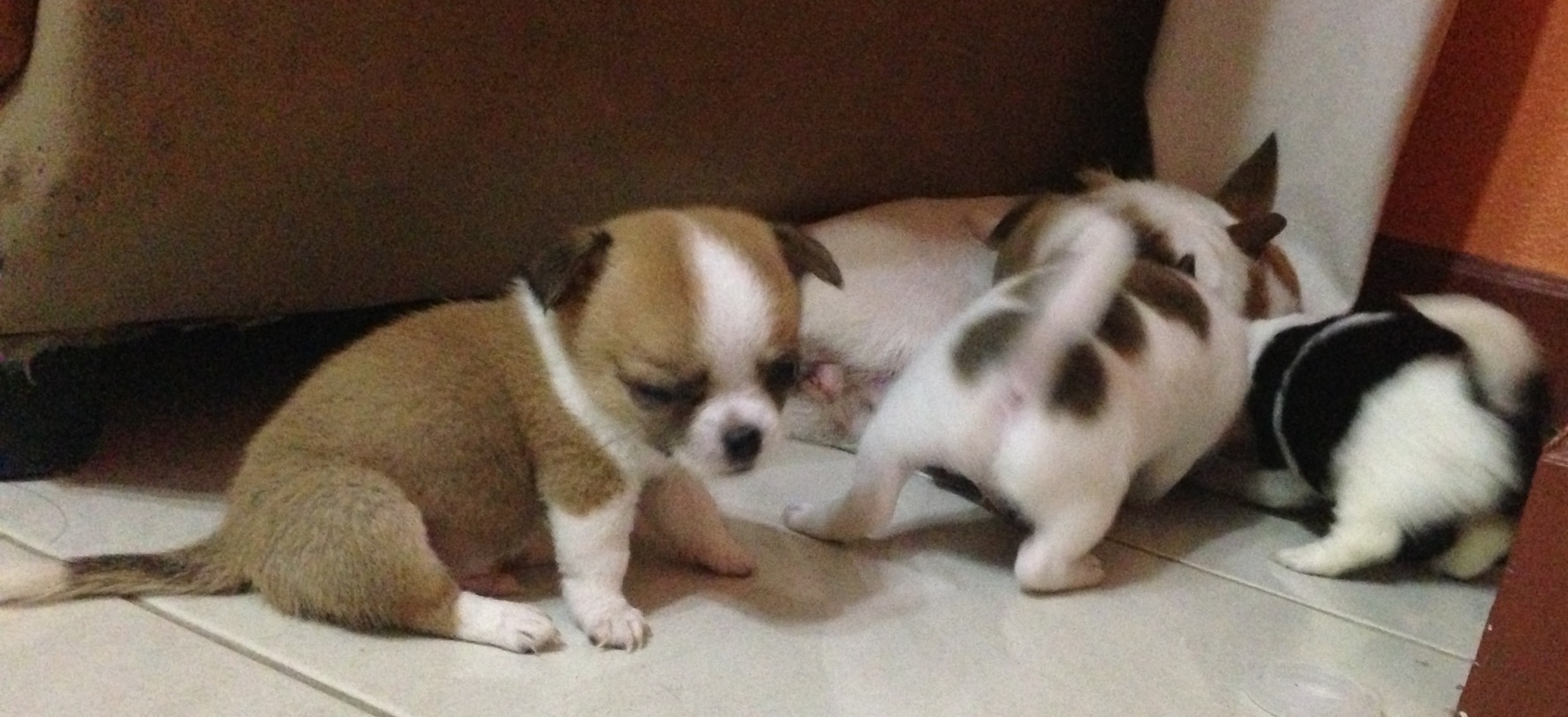 รูปที่ 2 แม่สลิ่มเป็นชิวาวาขนสองชั้นสายใต้หวัน น้ำหนัก 1.7 กก. พ่อมูเก้นชิวาวาขนยาว สายเมกา น้ำหนัก 2 กก. มาร์คกิ้งเปะสีสวย หล่อมากๆ มีใบเพ็ดดีกรีเต็มใบทั้ง 2 ค่ะ