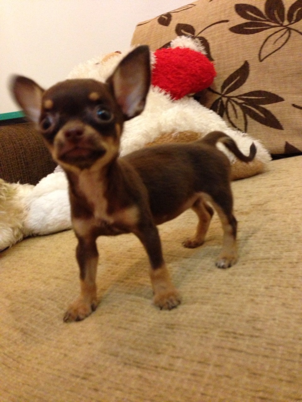 ขายชิวาวาขนสั้นสีช็อคแทนเพศเมียอายุ2เดือนครึ่ง วัคซีน+ถ่ายพยาธิแล้ว สุขภาพแข็งแรง ราคา9900 นัดเจอหรือจอดูรูปเพิ่มเติมได้ค่ะ สนใจโทร 0856886685,0880899698 id line :dogvillahouse facebook:doghouse villa kennel