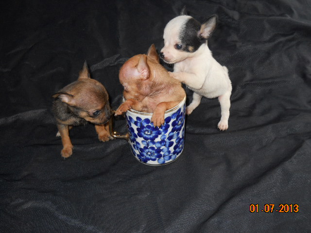***ขายลูกชิวาวา ขนสั้น ไซด์t-cup หน้าสั้นๆหัวกลมๆ เพศเมีย3ตัว***