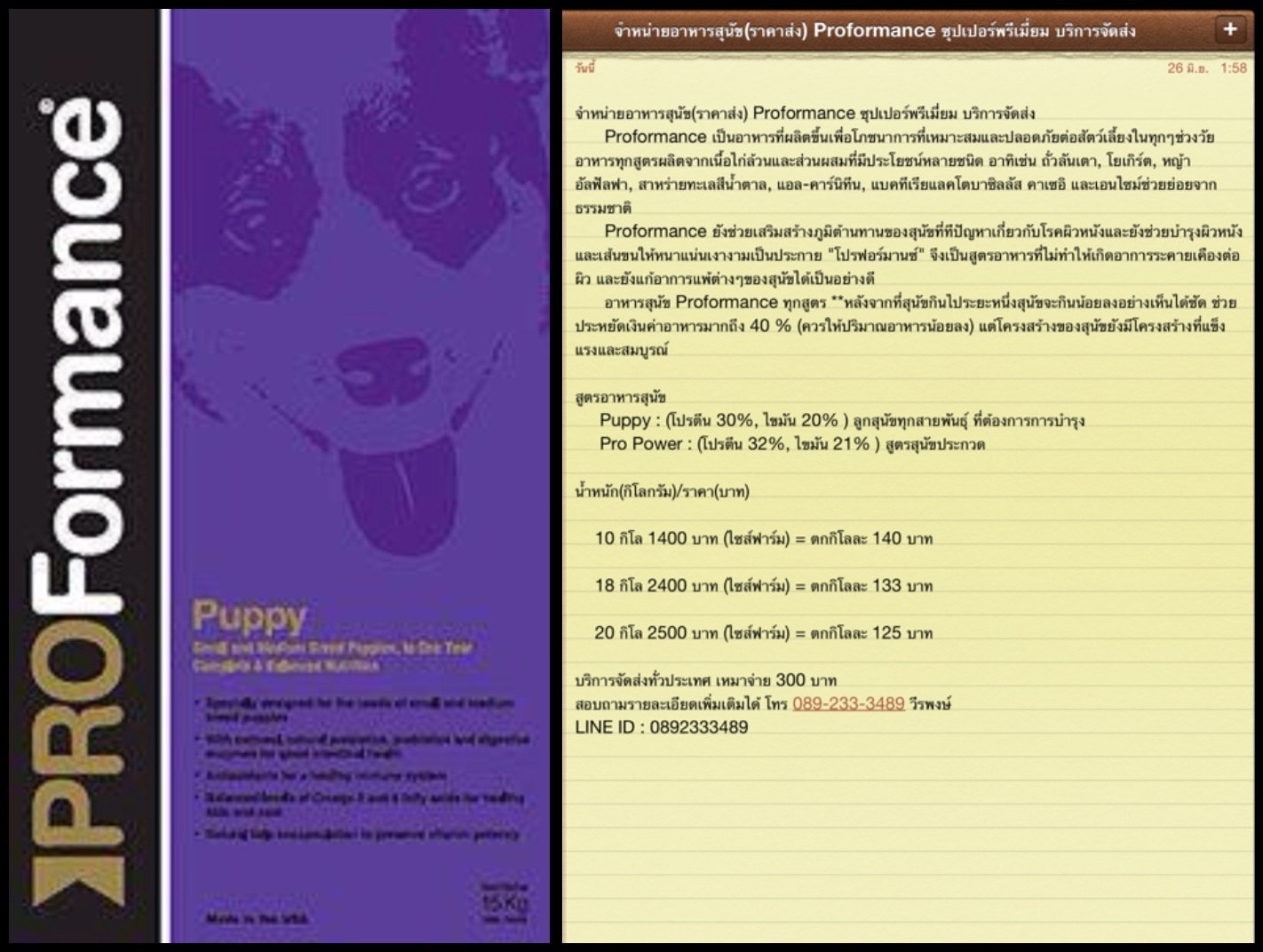 ตัวแทนจำหน่ายอาหารสุนัข(ราคาส่ง) Proformance ซุปเปอร์พรีเมี่ยม (สถานที่รับสินค้า ถนนพุทธมณฑล สาย 3)