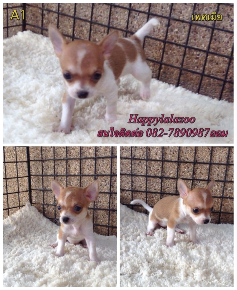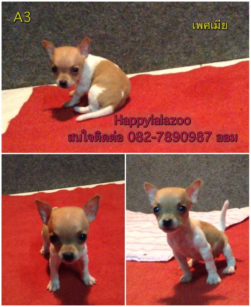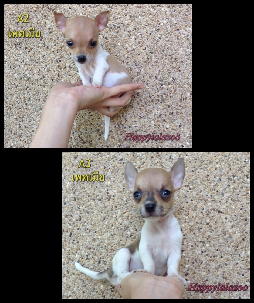 ขายชิวาวาขนสั้น พันธุ์แท้ สีแฟนซี ขาว-น้ำตาล ตอนนี้เหลือ A2กับA3 เพศเมียทั้งคู่ค่ะ