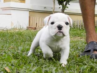 บูลด็อก ลูกโมเช่+แพนด้า สายอเมริกา เพศผู้ สีขาว พร้อมย้ายบ้านครับ!!!
