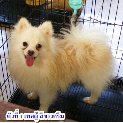 ตัวที่ 1 พ่อพันธุ์ สีขาวครีม อายุ 1 ปี 4 เดือน ขึ้นเก่ง วัคซีนครบ ราคา 14,000 บาท