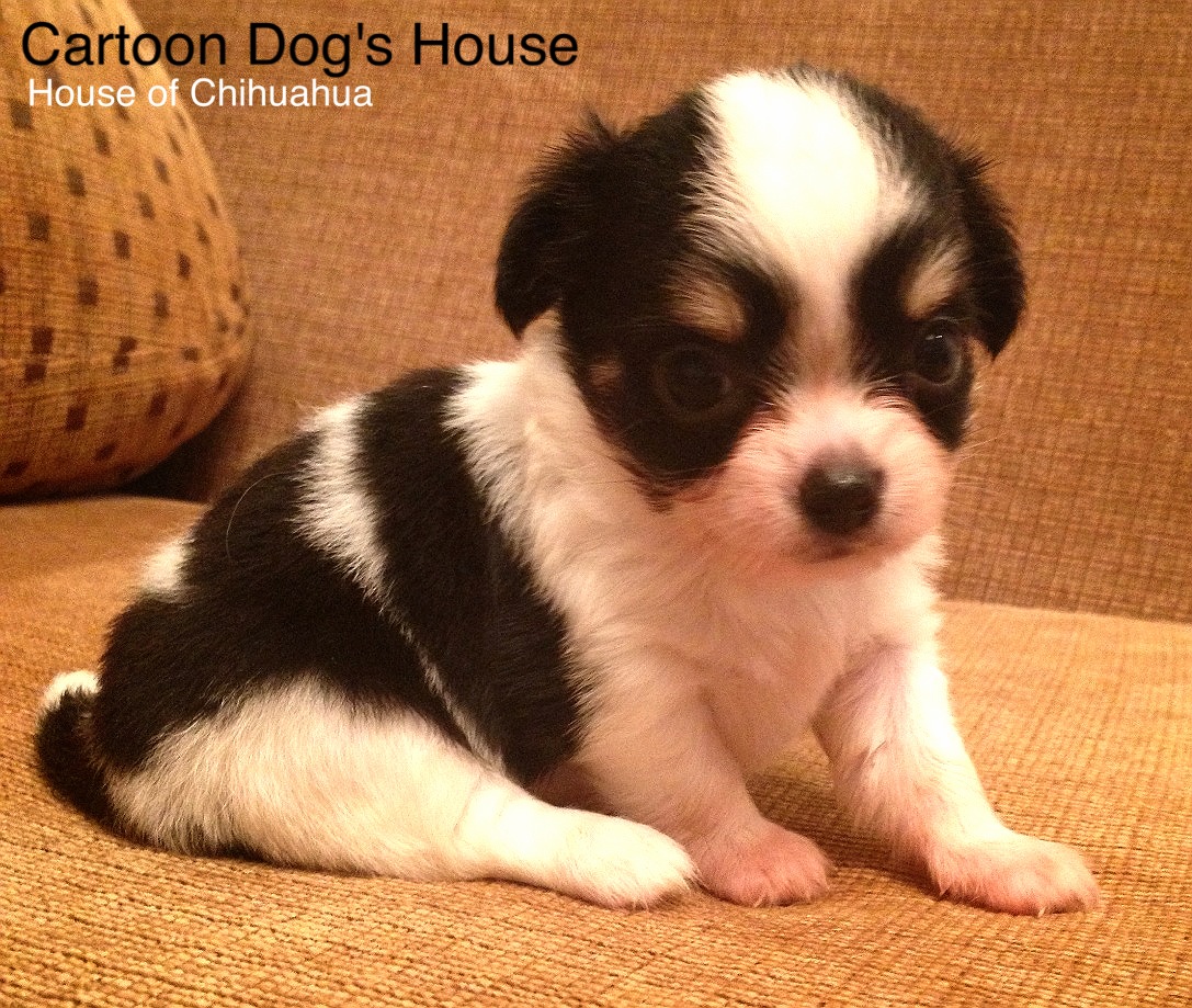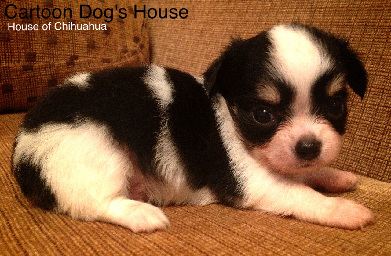 Cartoon Dog's House : ชิวาวาเพศผู้ ขนยาว สีขาวดำ หน้าตาแบ๊วๆ ราคาเบาๆ