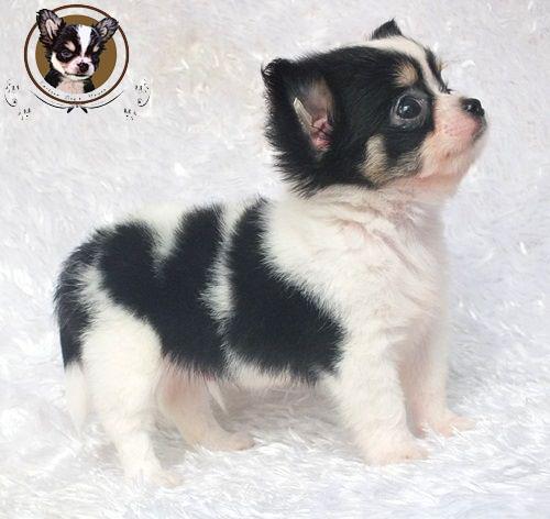 Cartoon Dog's House : ชิวาวาเพศผู้ ขนยาว สีขาวดำ มีคิ้วมีแก้ม หน้าตาแบ๊วๆ ราคาเบาๆ