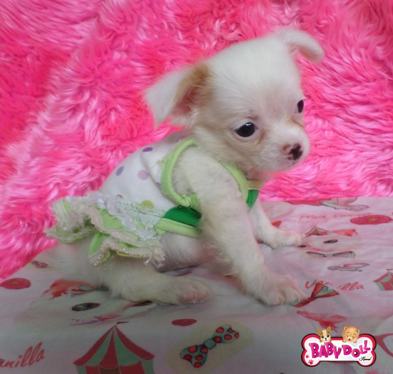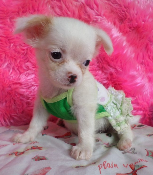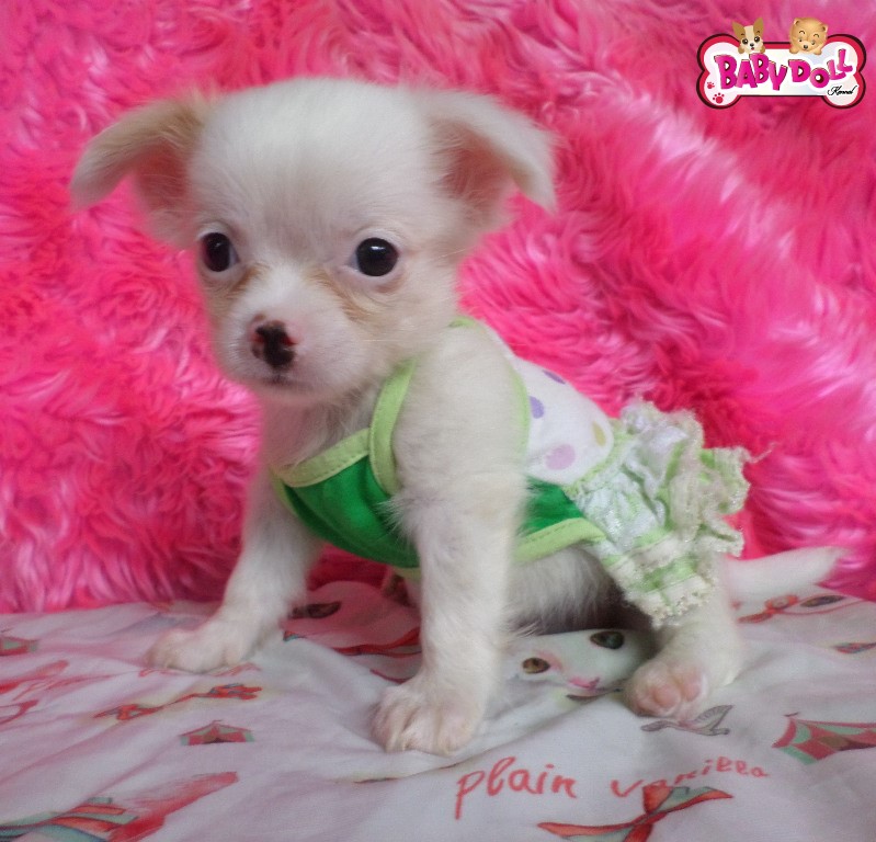 ดช.Snowman ชิวาวาขนยาวสีขาวมีแต้มสีครีมนิดหน่อย หัวโต หน้าสั้น น่ารักๆ เกรดคุณภาพค่ะ หัวสวยๆราคาไม่แพง ราคา6,500บาท ไซส์ปกติ